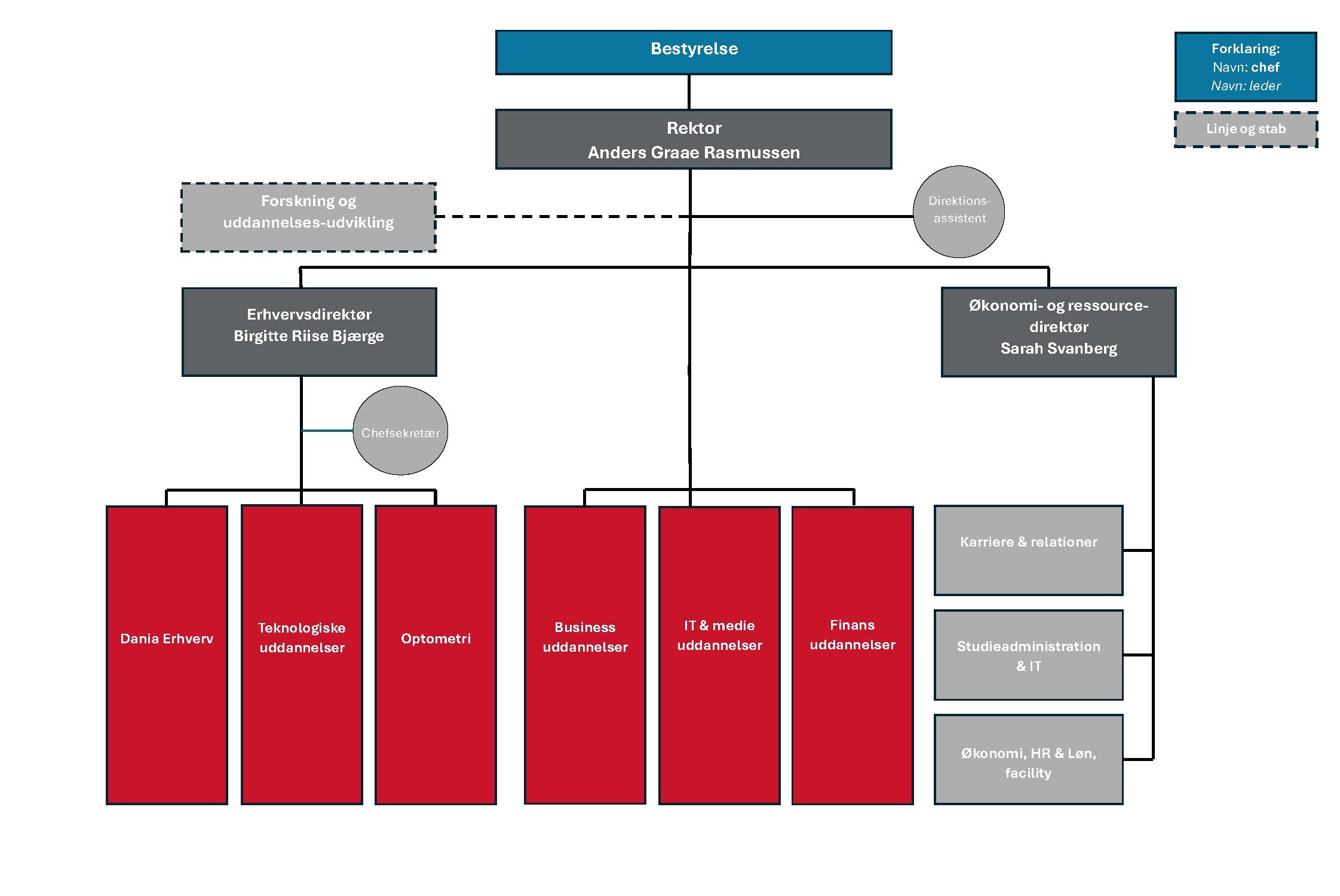 Erhvervsakademi Danias ledelse er todelt og består af bestyrelsen og direktion.